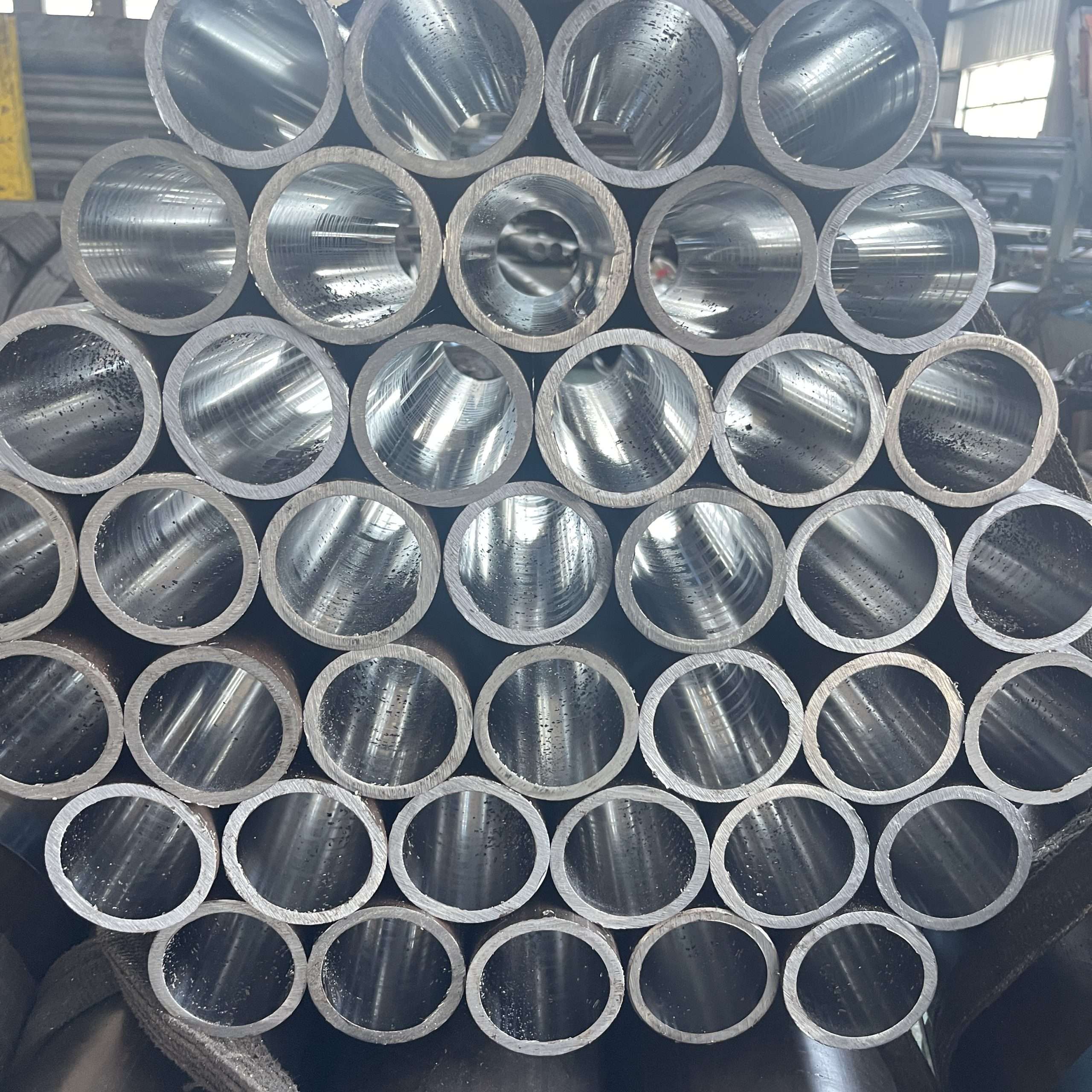 Çeşitli tür ve malzemeler honing boruları honing sonrası sevkiyat için hazırdır.